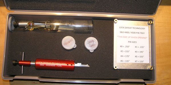 This is an amazing tool that will pick open the renter side of the six lever S&G 4400 - 4442 – 4443 – 4444- 4231 & 4420 locks & the current style S&G 4500 series seven lever key changeable lock in both 3/8” & 1/2” nose lengths. The pin & cam design actually opens the lock by decoding the renter side as you build the key through the process. This tool requires very little skill to master the technique because it decodes the lock instead of picking it. With practice, you can open these locks in anywhere from 3 – 12 minutes without damaging the lock. This advanced precision tool features a key blade made of Titanium for the ultimate strength. Part #SG 4400