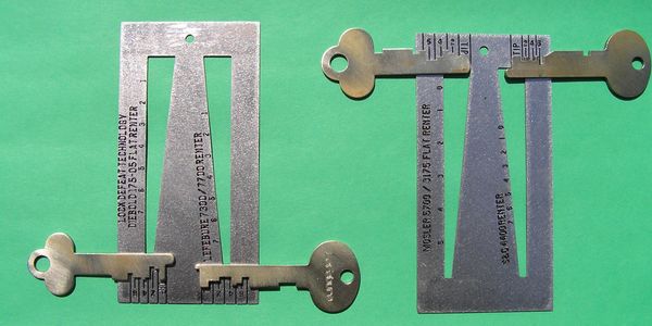 SAFE DEPOSIT KEY DECODER - Finally a tool that decodes safe deposit keys in seconds without using a caliper to determine the key combination. This double sided stainless steel plate has four precision decoding tracks. It will decode Mosler 5700/3175 flat renter keys, S&G 4400 renter keys, Diebold 175-05 renter keys and Lefebure 7300/7700 renter keys. The tool also features an innovative spacing device to determine the actual spacing locations. Simply place the key on the plate with the tip aligned at the “TIP” location and the spacing lines indicate the precise locations to determine the cuts. Another Lock Defeat Technology first!!
